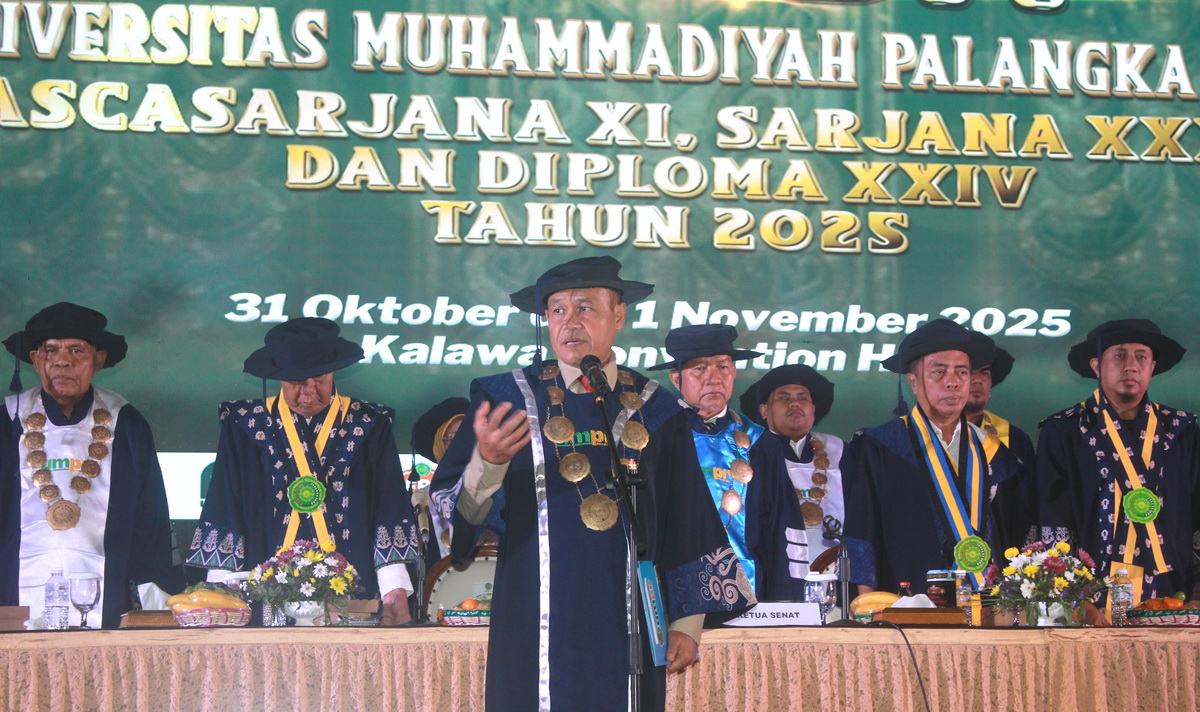 “Terimakasih untuk para orangtua yang telah memilih Universitas Muhammadiyah sebagai perguruan tinggi bagi putra-putrinya. Kami berupaya mengantarkan putra-putri Anda menjadi pribadi yang mandiri, profesional, dan siap menghadapi tantangan kerja,” ujar Muhadjir pada wisuda dan pelepasan 2.013 alumni UMPR, di Kalawa Convention Center Palangka Raya, Sabtu (1/11/2025).