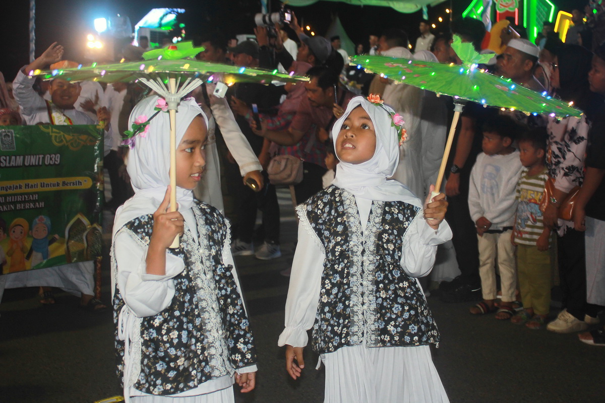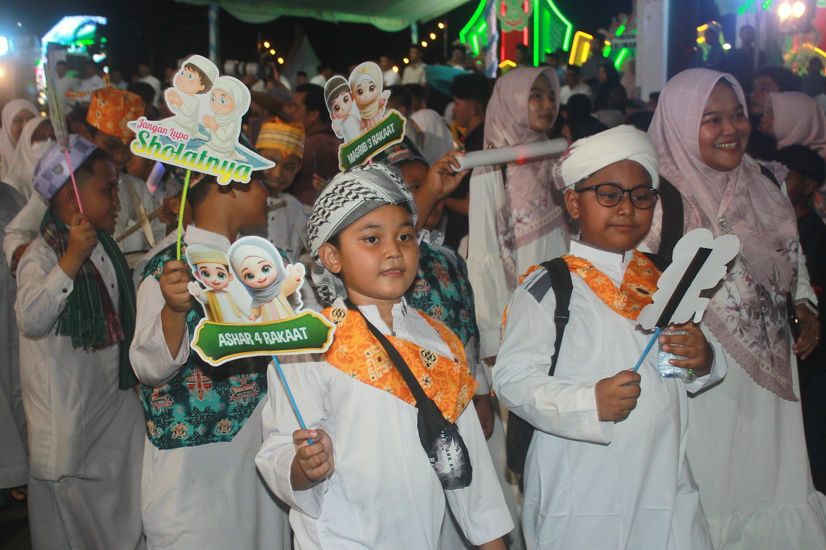 Santri TKA/TPA menjadi penampil pertama arak-arakan.