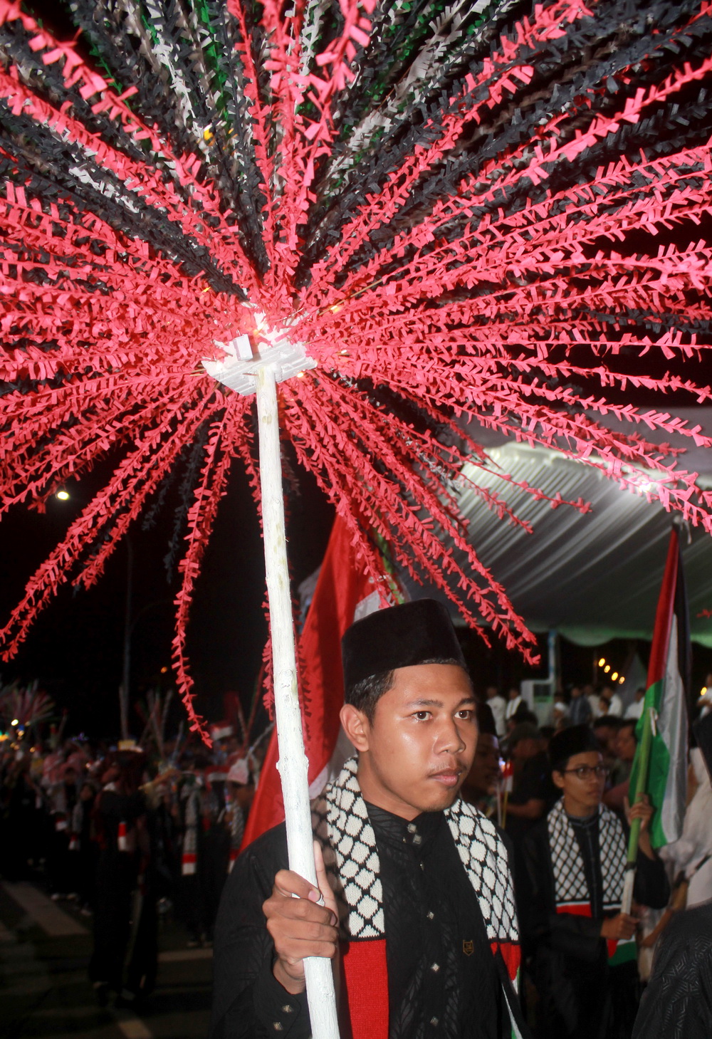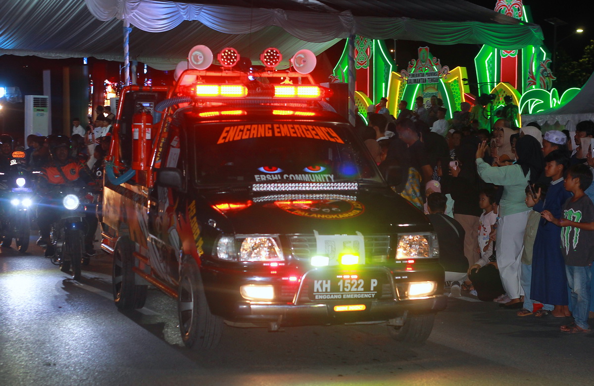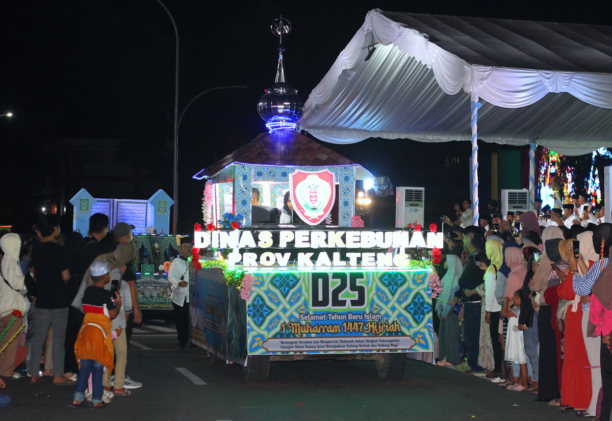 TAHUN BARU - Kesemarakan Pawai Muharram sambut Tahun Baru Islam 1447 Hijriyah, di Bundaran Besar Talawang, Palangka Raya, Kamis (26/6/2025) malam. (FOTO: SARIPUDIN)