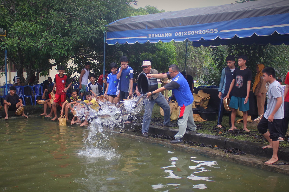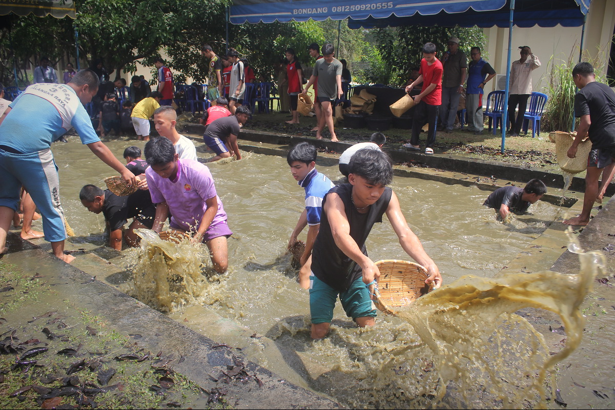 Semarak lomba Manyauk Lauk di kolam Museum Balanga, Palangka Raya, Senin (11/8/2025). (FOTO: SARIPUDIN)